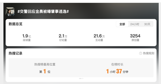 话题“交警回应金晨被曝肇事逃逸”登上热搜